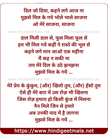 Lyrics of Dil Jo Diya, Kahane Lage Aaj Naa - दिल जो दिया, कहने लगे आज ना