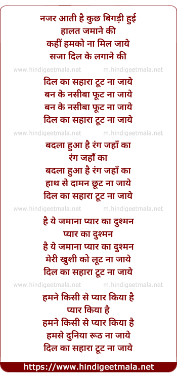 Lyrics of Dil Ka Sahara Na Tut Na Jaye - नजर आती है कुछ बिगड़ी हुई