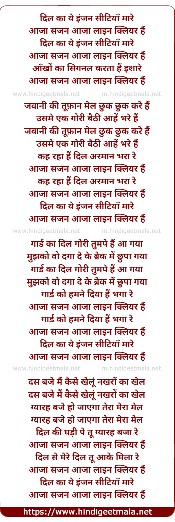 Lyrics of Dil Ka Ye Engine Seetiya Mare - दिल का ये इंजन सीटियाँ मारे