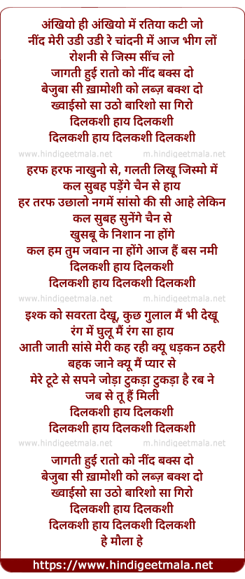 Lyrics of Dil Kashi Haay Dil Kashi (Version 2) - अंखियो ही अंखियो में रतिया कटी जो