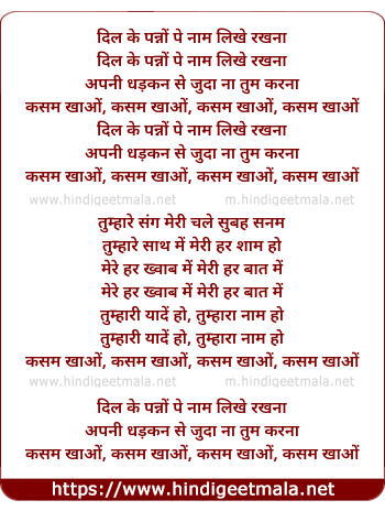 Lyrics of Dil Ke Panno Pe Naam Likhe Rakhana - दिल के पन्नों पे नाम लिखे रखना