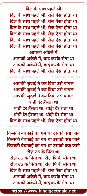 Lyrics of Dil Ke Sath - दिल के साथ पहले भी