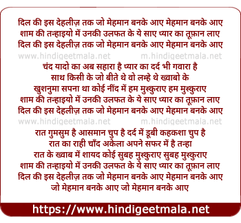 Lyrics of Dil Kee Iss Dehlij Tak Jo Mehman Banake Aaye - दिल की इस देहलीज़ तक जो मेहमान बनके