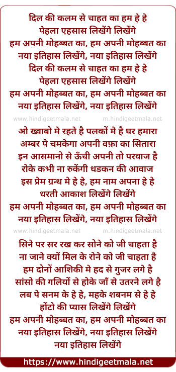 Lyrics of Dil Kee Kalam Se - दिल की कलम से