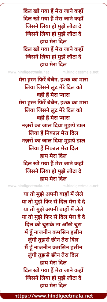 Lyrics of Dil Kho Gaya Hai Mera - दिल खो गया हैं मेरा