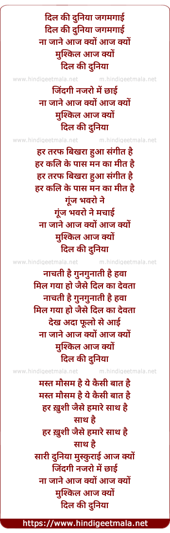 Lyrics of Dil Ki Duniya Jagmagayi Na Jane - दिल की दुनिया जगमगाई ना जाने