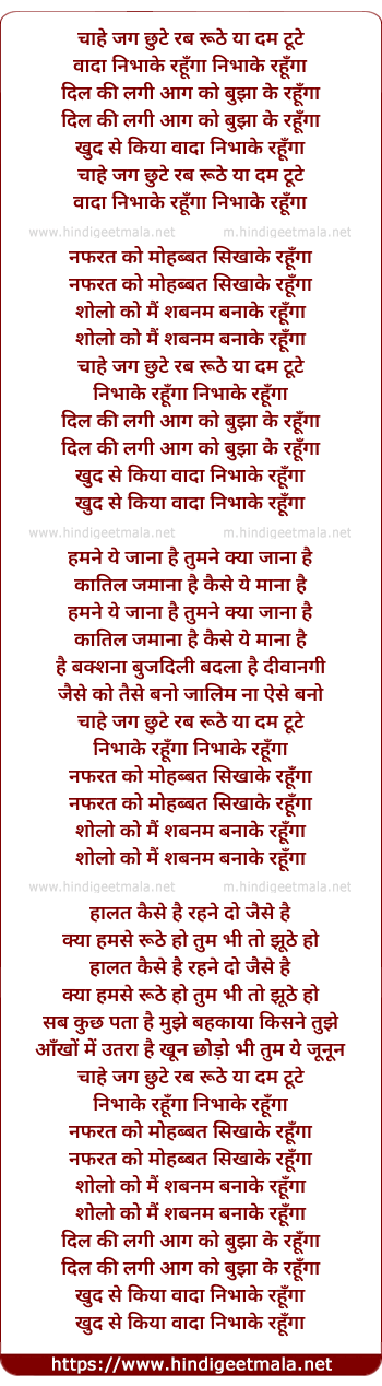 Lyrics of Dil Ki Lagi Aag Ko Bhujha Ke Rahunga - दिल की लगी आग को बुझा के रहूँगा