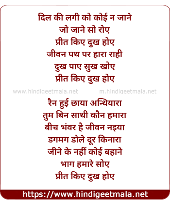Lyrics of Dil Ki Lagi Ko Koi Na Jaane - दिल की लगी को कोई न जाने जो जाने सो रोए