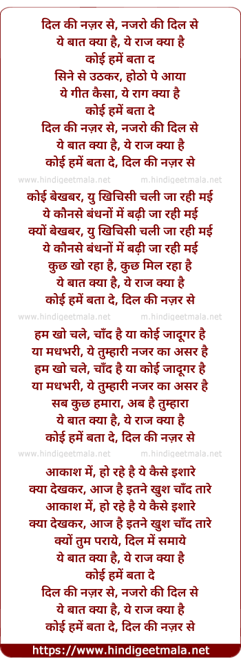 Lyrics of Dil Ki Nazar Se, Nazaro Ki Dil Se - दिल की नज़र से, नजरो की दिल से