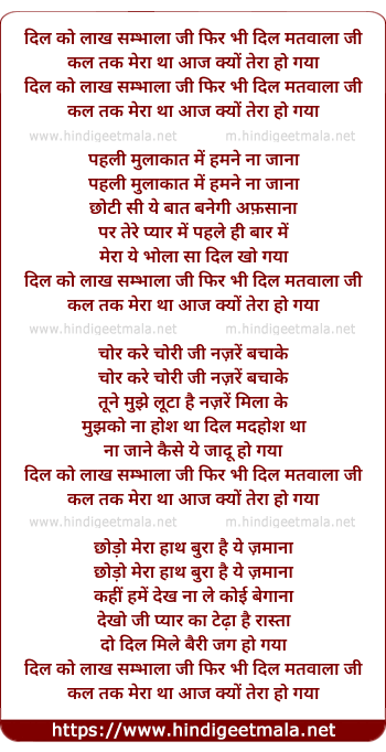 Lyrics of Dil Ko Lakh Sambhala Jee - दिल को लाख सम्भाला जी