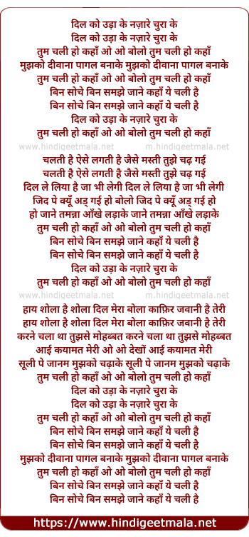 Lyrics of Dil Ko Uda Ke Nazare Chura Ke - दिल को उड़ा के नज़ारे चुरा के
