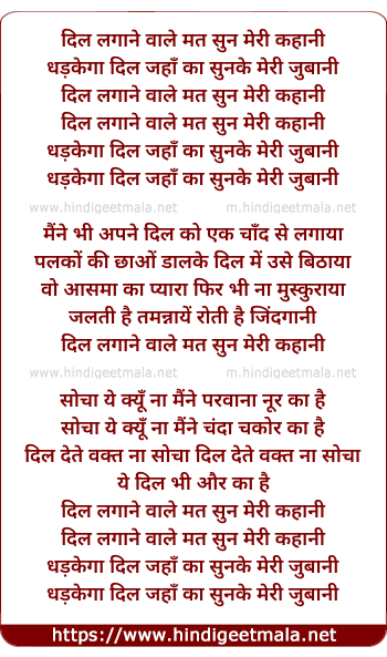 Lyrics of Dil Lagane Wale Mat Sun Meri Kahani - दिल लगाने वाले मत सुन मेरी कहानी