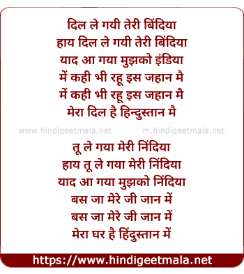 Lyrics of Dil Le Gayi Teri Bindiya (Ii) - दिल ले गयी तेरी बिंदिया