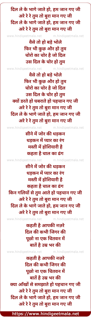 Lyrics of Dil Le Ke Bhage Jaate Ho - दिल ले के भागे जाते हो