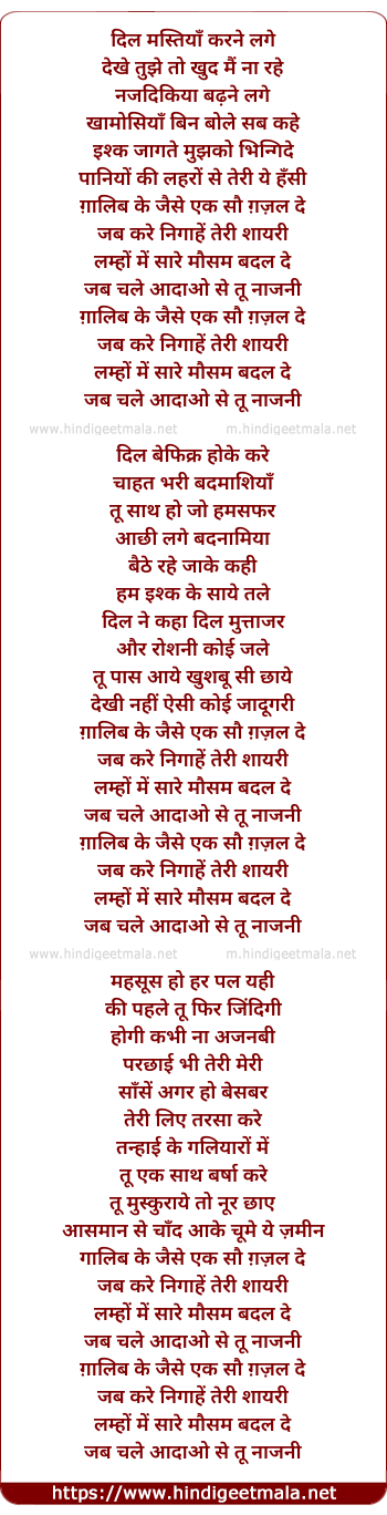 Lyrics of Dil Mastiya - दिल मस्तियाँ