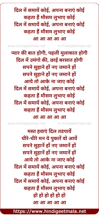 Lyrics of Dil Me Samaye Koi Apna Banaye Koi - दिल में समायें कोई अपना बनाएं कोई
