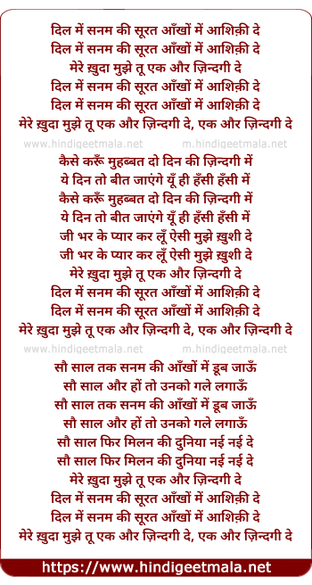 Lyrics of Dil Me Sanam Ki Surat - दिल में सनम की सूरत