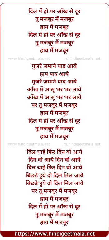 Lyrics of Dil Mein Ho Par Aankh Se Door - दिल में हो पर आँख से दूर