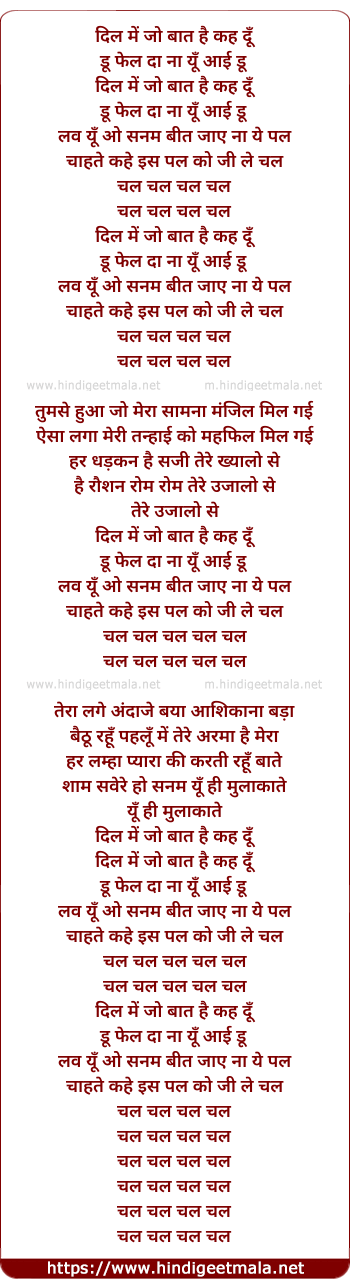 Lyrics of Dil Mein Jo Baat Hai - दिल में जो बात है