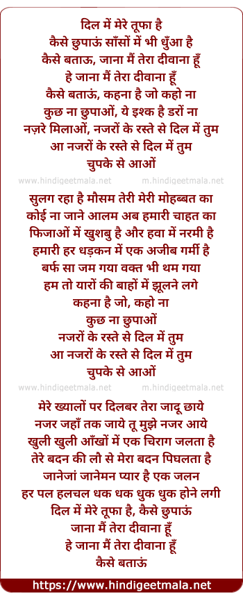 Lyrics of Dil Mein Mere Tufan Hai - दिल में मेरे तूफा है