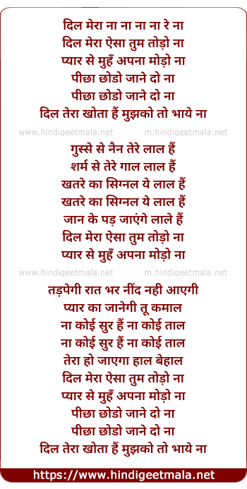 Lyrics of Dil Mera Aise Tum Todo Na - दिल मेरा ऐसे तुम तोड़ो ना