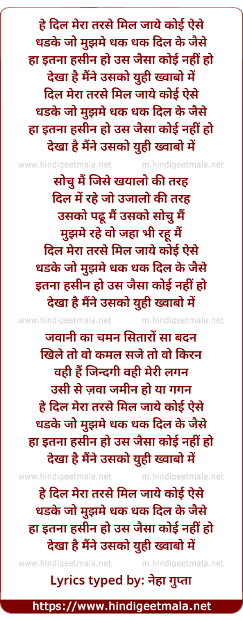 Lyrics of Dil Mera Tarse Mil Jaaye Koyee Aise - दिल मेरा तरसे मिल जाये कोई ऐसे