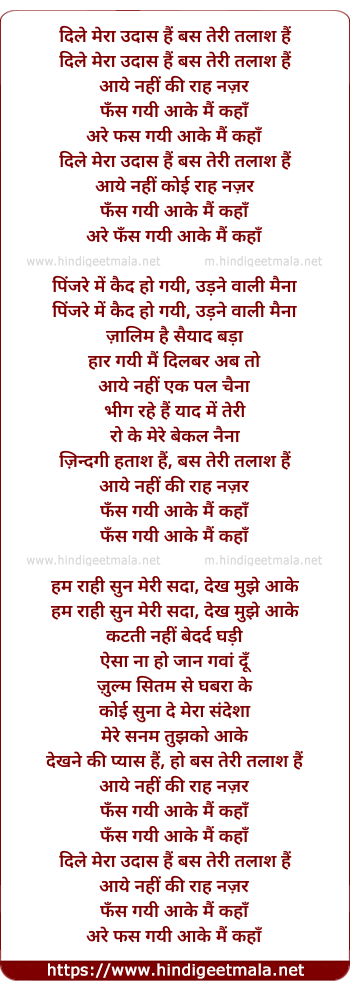 Lyrics of Dil Mera Udaas Hai (Female) - दिले मेरा उदास हैं