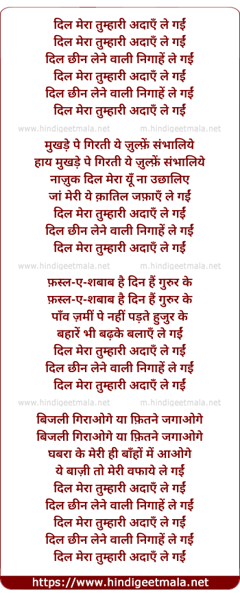 Lyrics of Dil Meraa Tumharee Adaye Le Gayi - दिल मेरा तुम्हारी अदाएँ ले गईं