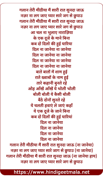 galan teri mithiya me saari raat sunda jau (na janeya)