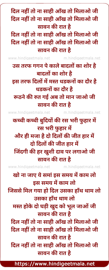 Lyrics of Dil Nahin Toh Na Sahi Ankh Toh Milao - दिल नहीं तो ना सही आँख तो मिलाओ