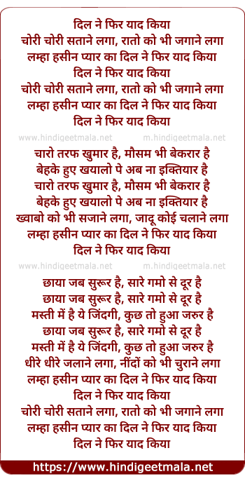Dil Ne Phir Yaad Kiya Chori Chori Satane Laga - दिल ने फिर याद किया चोरी चोरी सताने लगा