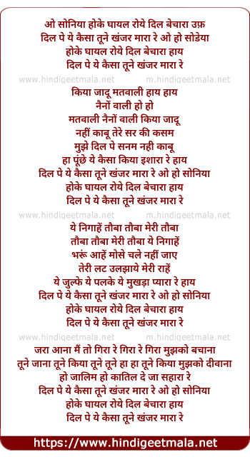 Lyrics of Dil Pe Kaisa Yeh Tune Khanjar Mara Re - दिल पे ये कैसा तूने खंजर मारा रे