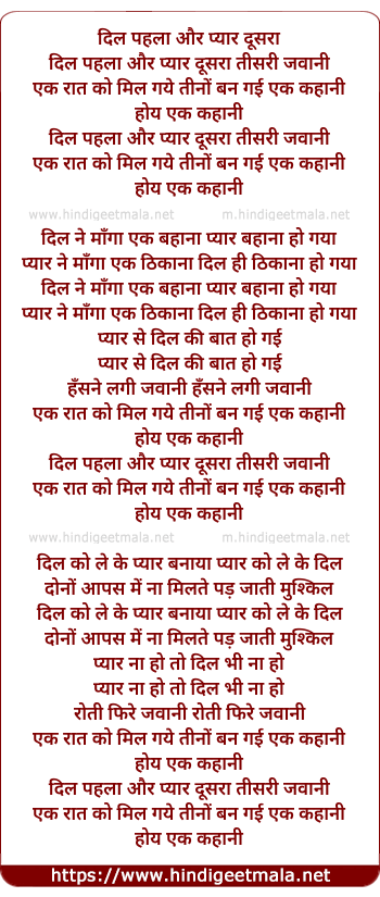 Lyrics of Dil Pehla Aur Pyar Dusra Tisari Jawani - दिल पहला और प्यार दूसरा तीसरी जवानी