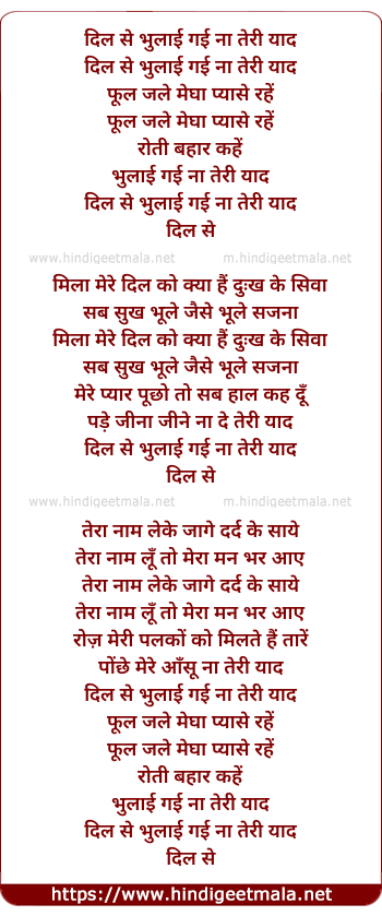 Lyrics of Dil Se Bhulayi Gayi Na Teri Yaad - दिल से भुलाई गई ना तेरी याद