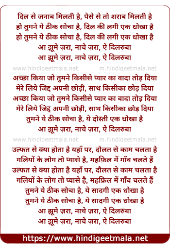 aa jhume jara, naache jara, ae dilruba