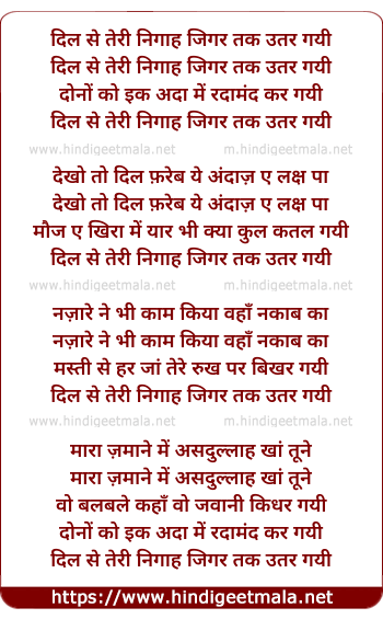 Lyrics of Dil Se Teri Nigaah - दिल से तेरी निगाह जिगर तक उतर गयी