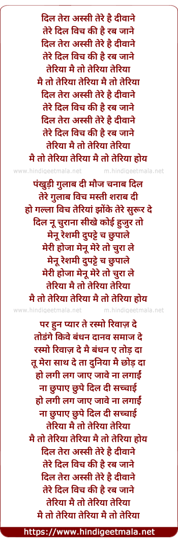 Lyrics of Dil Tera Assi Tere Hai Diwane - दिल तेरा अस्सी तेरे है दीवाने