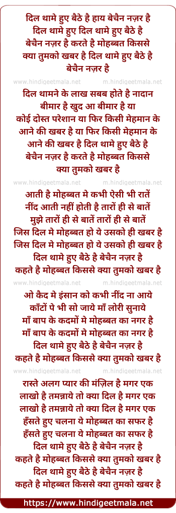 Lyrics of Dil Thame Hue Baithe Hai - दिल थामे हुए बैठे है