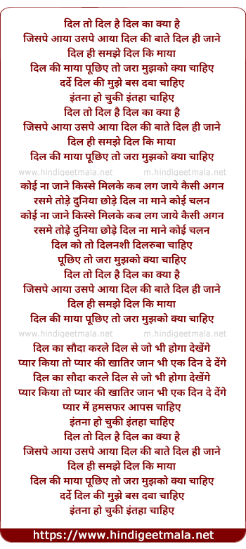Lyrics of Dil To Dil Hai Dil Ka Kya Hai - दिल तो दिल है दिल का क्या है