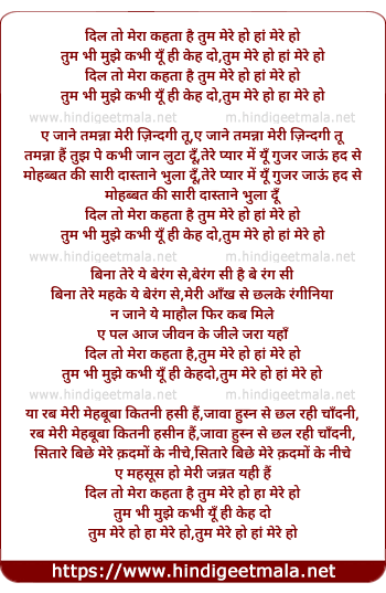Lyrics of Dil To Mera Kehta Hai - दिल तो मेरा कहता है