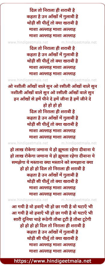 Lyrics of Dil To Nirala Hi Sharabi Hai - दिल तो निराला ही शराबी है