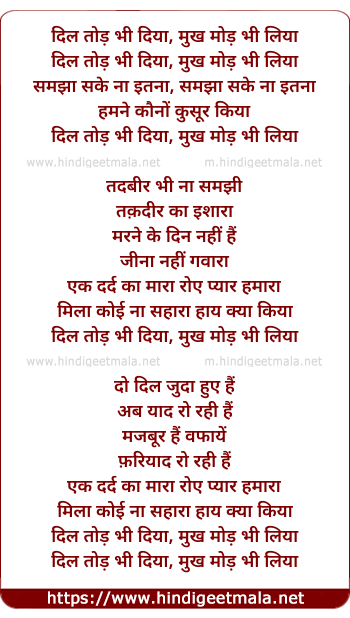 Lyrics of Dil Tod Bhi Diya Mukh Mod Bhi Liya - दिल तोड़ भी दिया मुख मोड़ भी लिया