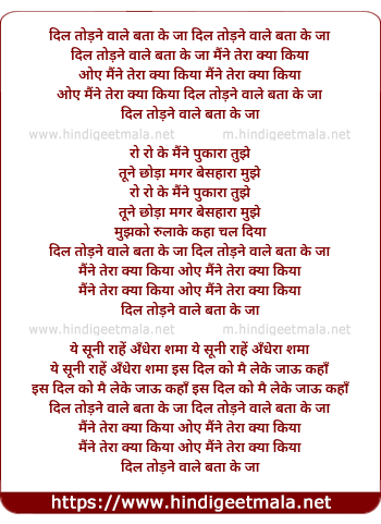 Lyrics of Dil Todne Wale Bata Ke Ja - दिल तोड़ने वाले बता के जा
