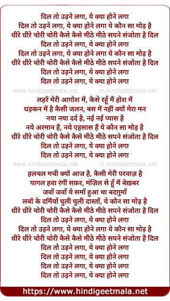 dhire dhire chori chori kaise kaise mithe mithe sapne sanjota hai dil