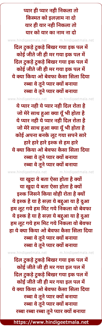 rabba ve tune pyaar kyun banaaya