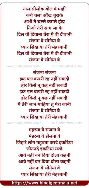 Lyrics of Dil VI Deewana Tera - दिल वी दिवाना तेरा