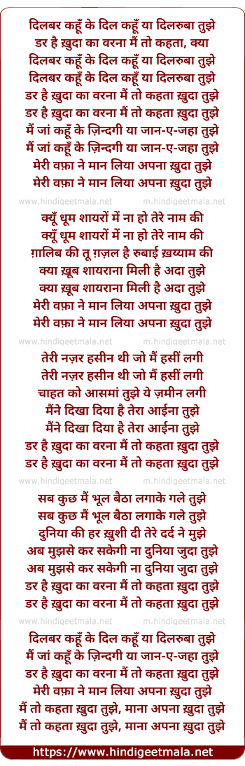 Lyrics of Dilabar Kahu Ke Dil Kahu Ya Dilaruba Tujhe - दिलबर कहूँ के दिल कहूँ या दिलरुबा तुझे