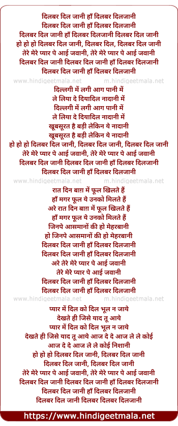 ho ho ho dilbar dil jaani, dilbar dil, dilbar dil jaani