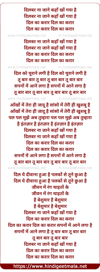 Lyrics of Dilbar Na Jaane Kaha Kho Gaya - दिलबर ना जाने कहाँ खों गया