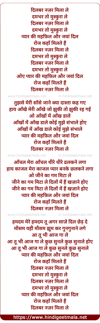 Lyrics of Dilbar Nazar Mila Le - दिलबर नज़र मिला ले